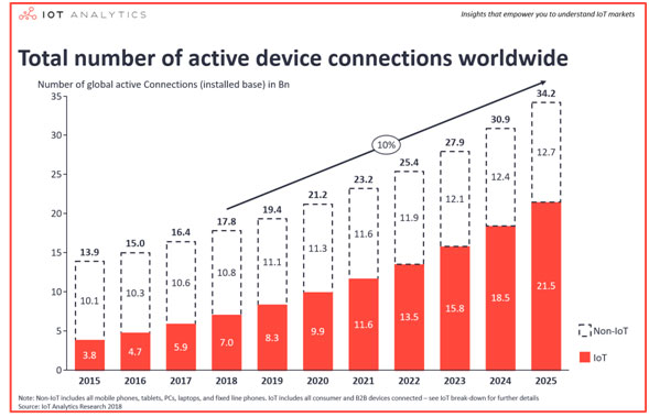 This graph from IoT analytics depicts the steady growth of IoT devices. With more devices connected to the Internet, organizations would need to explore ways to use IoT technology to optimize and innovate on their business as this can give them a competitive edge in their industry. Some of the reasons why companies should incorporate IoT technology into their business include;