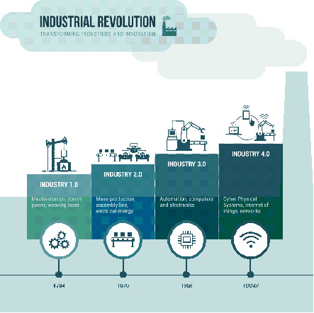 The manufacturing industry went through multiple stages, called industrial revolutions. The first industrial revolution was led by the steam engine, which brought power and mechanization to the industry and enabled the production of steel, textiles, and the heavy materials necessary for the construction of roads, railroads and trains. The railroad and the telegraph led to the second industrial revolution, which brought the electricity and the modern production line to the factory. The third industrial revolution, which occurred in the second half of the 20th century, was marked by computers, automation, electronics and robotics entering production plants. The fourth industrial revolution will be a much faster transformation, fueled by globalization, modern information systems and global connectivity, and mobility of people, goods, and capital. “I4.0” is considered to be the “age of data” and will include the adoption of cyber-physical systems, including connected, smart, integrated, self-learning and self-regulating systems.