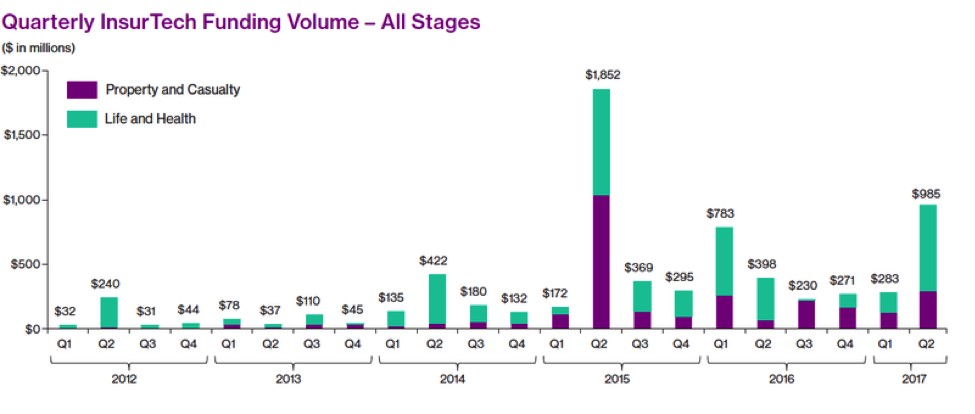 The insurance industry has usually been considered to be highly old-fashioned and slow in terms of adopting innovations. However, the situation has changed significantly with the development of insurtechs – online players dedicated to optimizing insurance and making traditional models on the market more efficient. Insurtech is becoming more widespread - according to the World Insurance Report[1], which features interviews with 103 insurance executives and more than 8,000 customer responses, nearly one third of customers today rely on insurtech solutions, either exclusively or in combination with an established insurance company. Interest among investors is also rising - in the second quarter of 2017 insurance segment observed 248% QoQ growth in funding volume, which reached $985 million.
