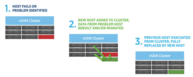 Customers are worried about the application/server outages and Automated Cluster Remediation helps them to solve this problem. VMware Cloud on AWS uses vSphere HA to ensure that outages are minimized. In the case of a failed host, VMs are automatically restarted on the surviving hosts. vSAN software ensures that any VM configured with a policy of one or more host failures does not lose data. VMware Cloud on AWS then examines the host and either reboots it, in the case of a transient failure, or replaces it, in the case of hardware fault. In either case, the SDDC continues to run, and vSphere DRS optimizes VM placement to minimize impact on the running VMs. In the case of a degraded host, such as a failed disk, VMware Cloud on AWS efficiently removes the host by putting it in maintenance mode before eliminating it from the cluster. Customers are never billed for hosts that are added to a cluster for maintenance or fault tolerance reasons.